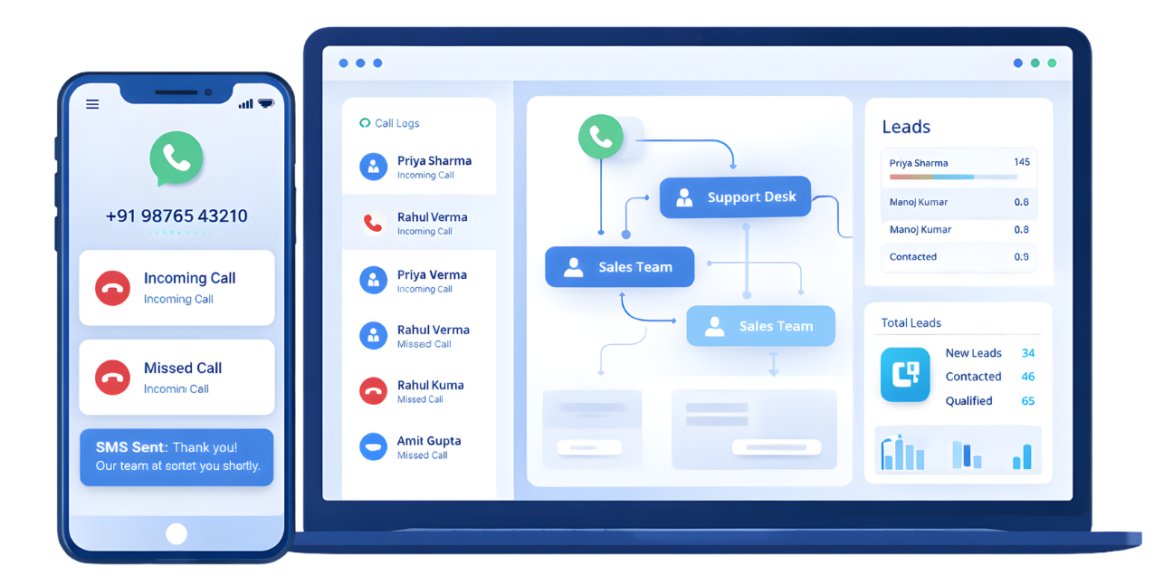 Capture every enquiry, respond faster, and convert more customers using IVR, Missed Call, Tollfree, SMS, Dialer, WhatsApp and CRM — all in one system.